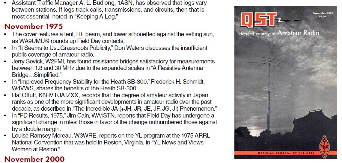 9/22/2009 - a picture in the November 1974 QST Field Day results (page 70)