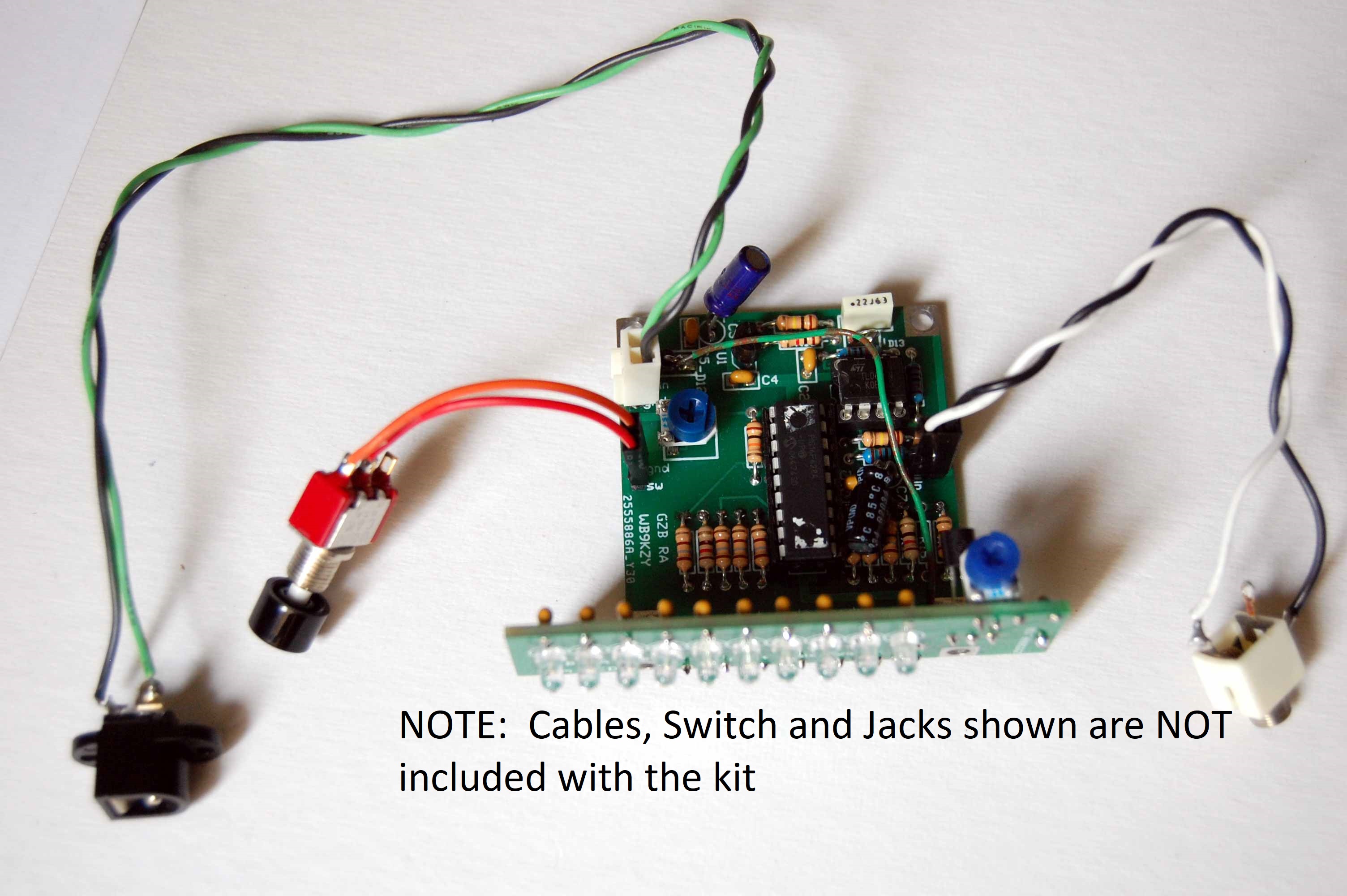 Grandson of Zerobeat Right Angle has 9 LEDs which graphically indicate the frequency of a received CW audio tone. Adjust your transceiver's